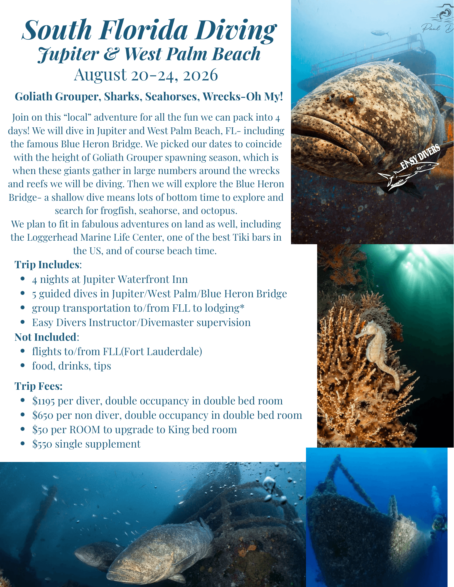 ALL trip deposits are nonrefundable, full cancellation policy and penalties are available in the Easy Divers Travel Application that must be provided at time of booking.